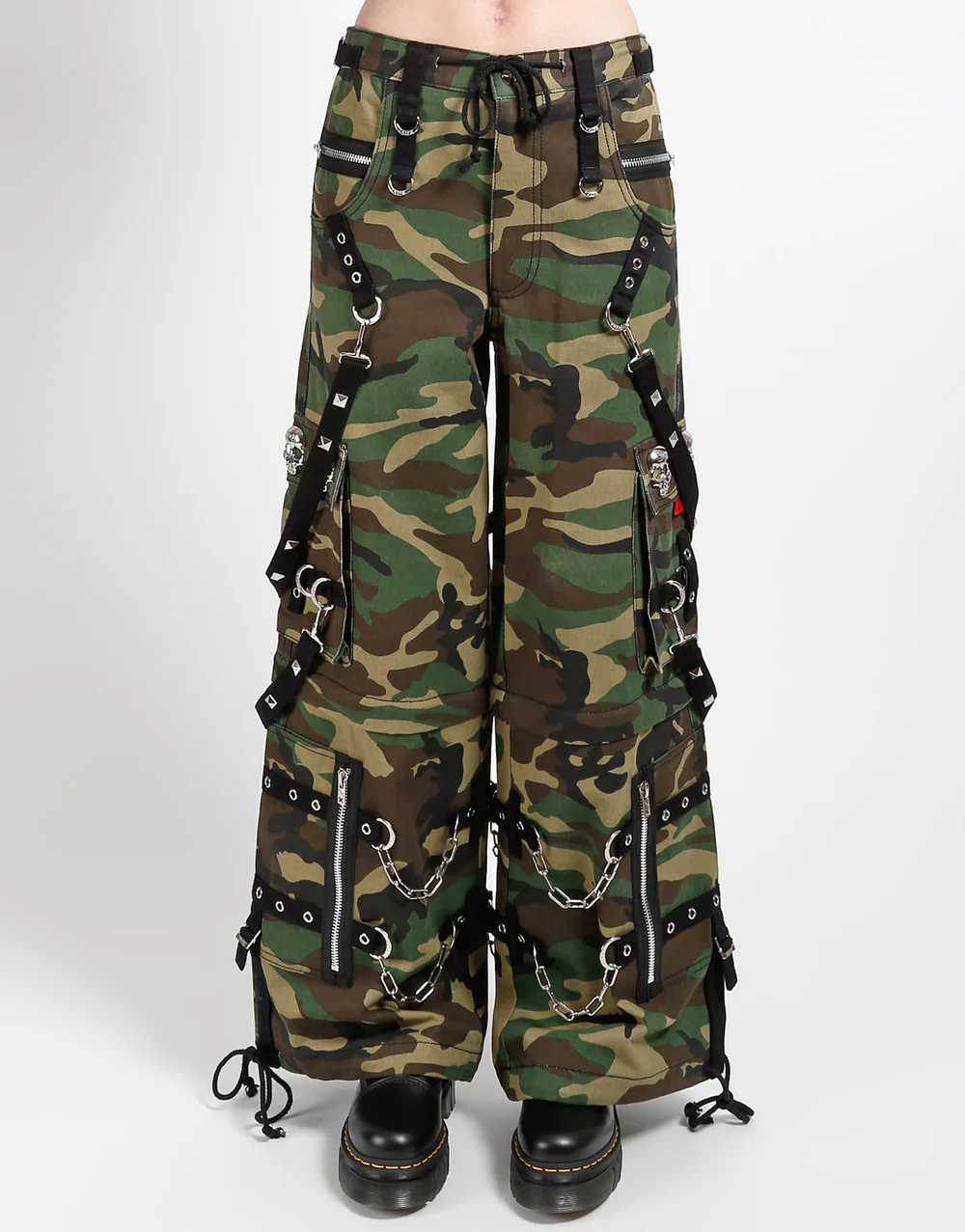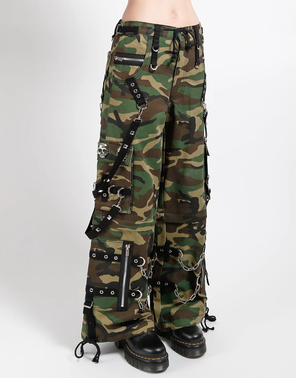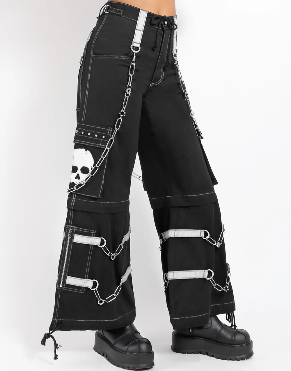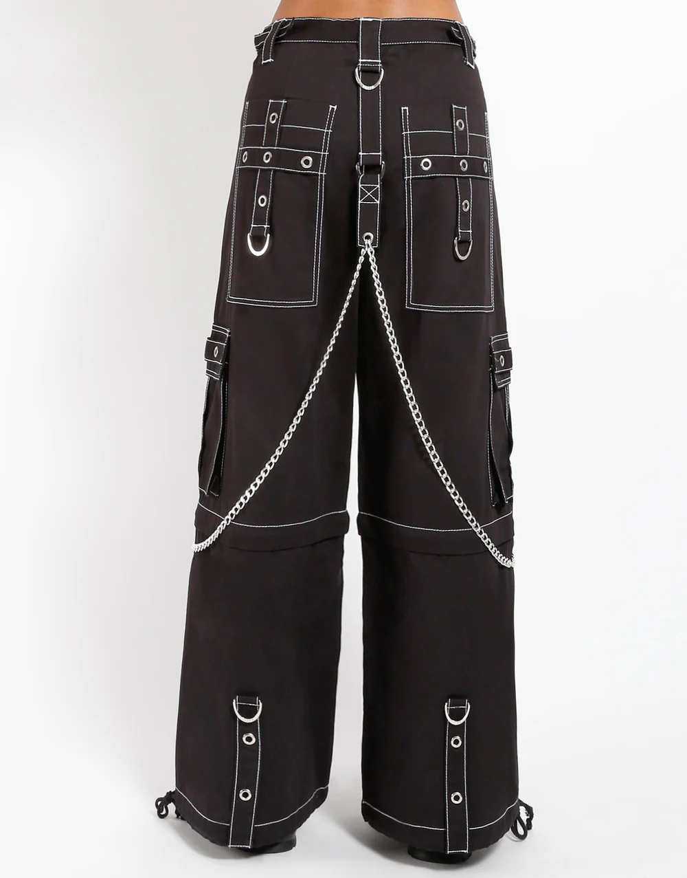 Details Chains, studs, zippers, rips, straps, cargo pockets
