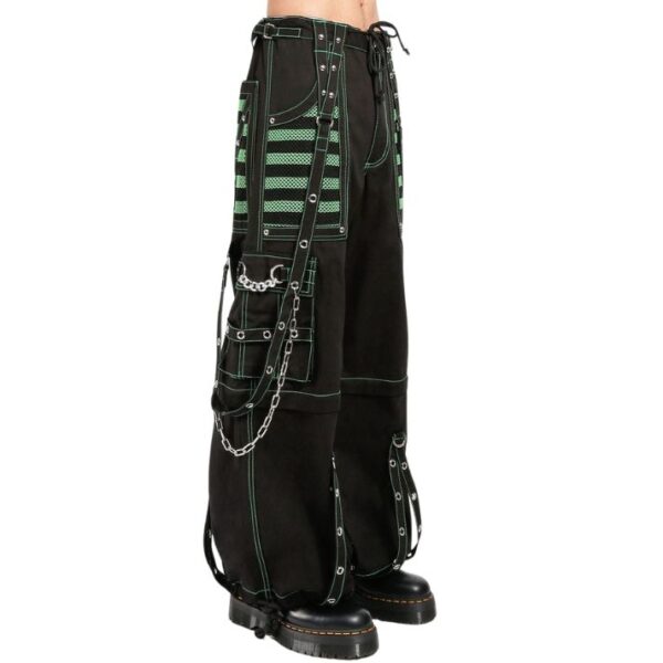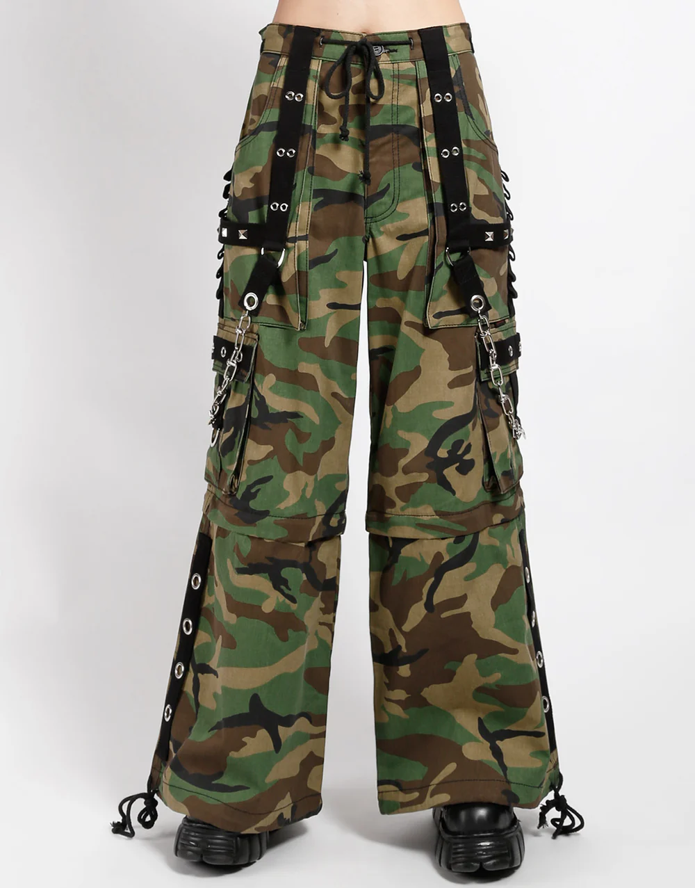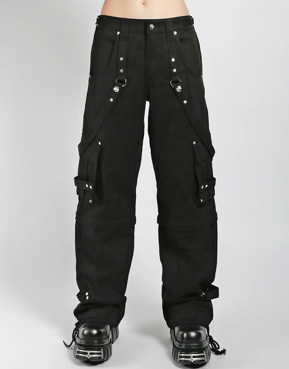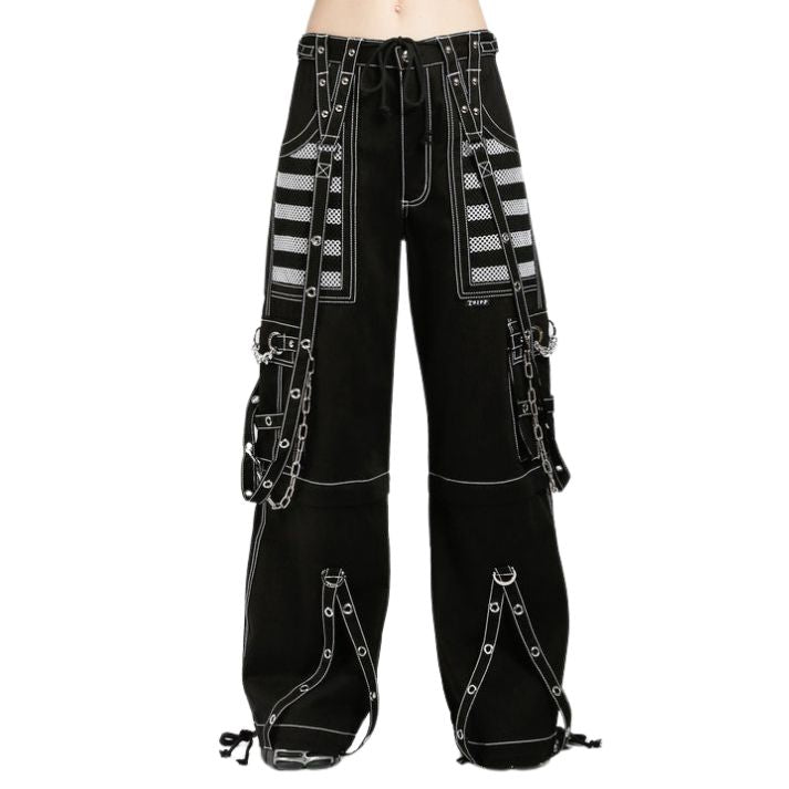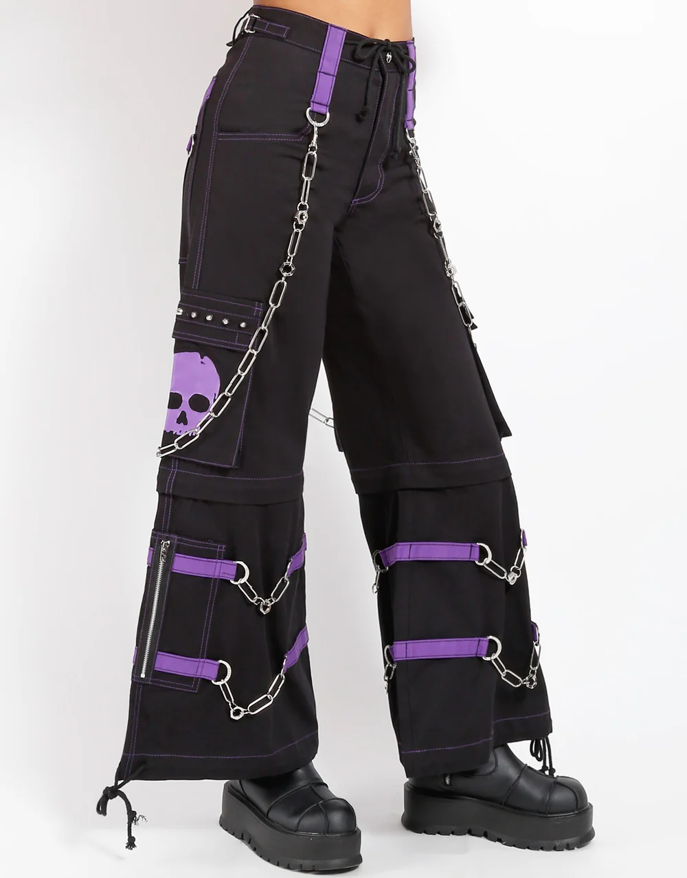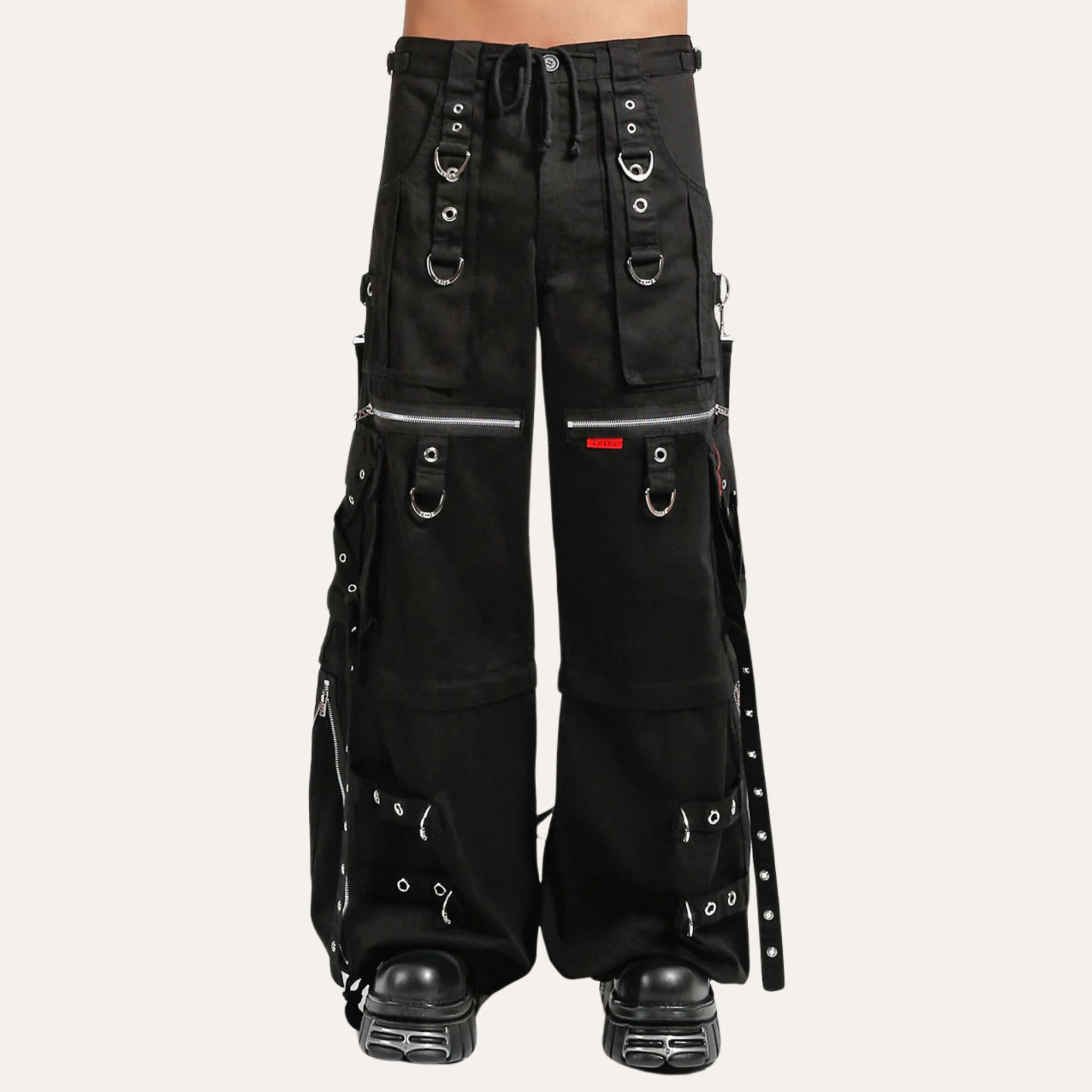 Details Chains, studs, zippers, rips, straps, cargo pockets